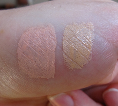 Rechts ist L'ideal Touch, der eine hautfarbene Coloration aufweist.